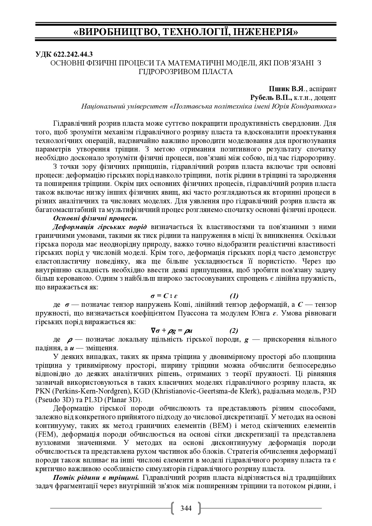 Основні фізичні процеси та математичні моделі, які пов’язані з гідророзривом пласта