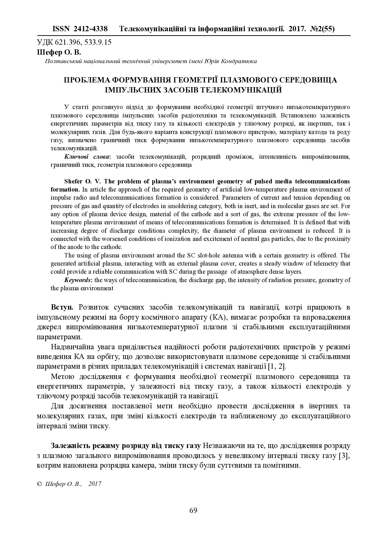 Проблема формування геометрії плазмового середовища імпульсних засобів телекомунікацій