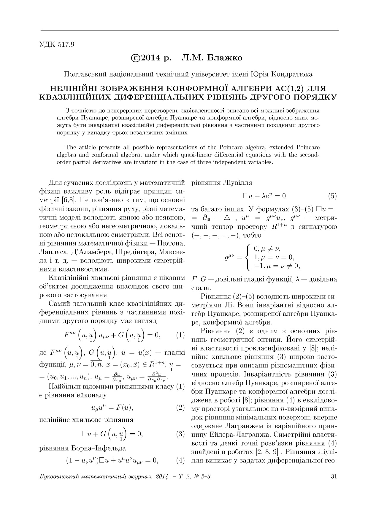 Нелінійні зображення конформної алгебри AC(1,2) для квазілінійних диференціальних рівнянь другого порядку