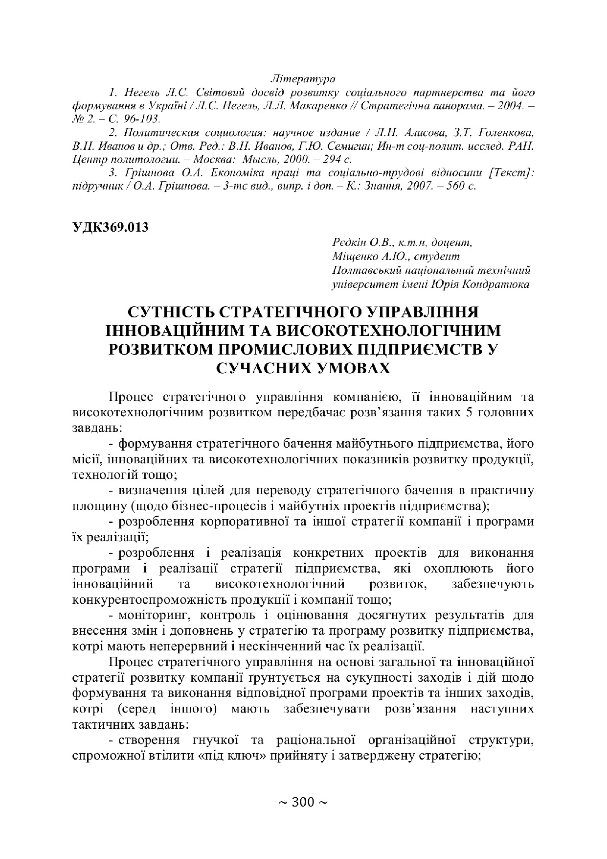 Сутність стратегічного управління інноваційним та високотехнологічним розвитком промислових підприємств у сучасних умовах
