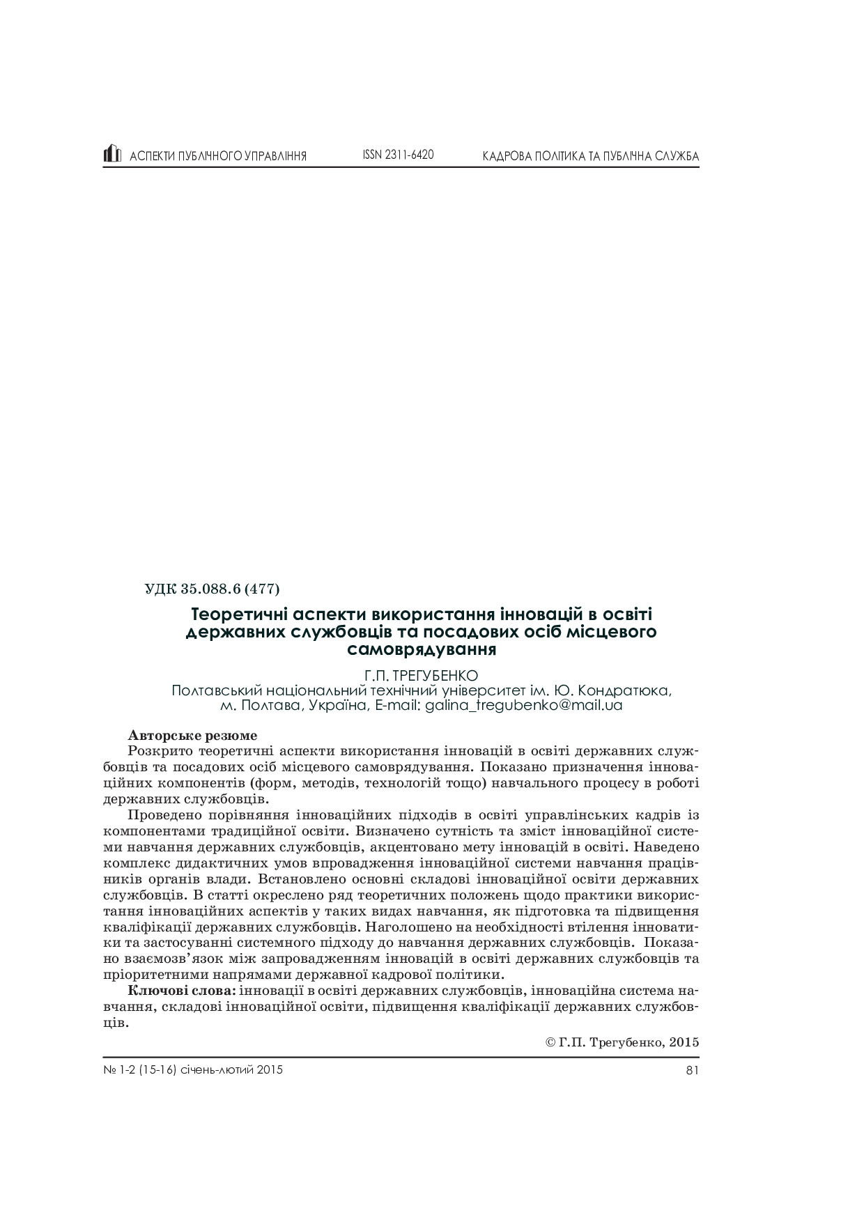 Теоретичні аспекти використання інновацій в освіті державних службовців та посадових осіб місцевого самоврядування.