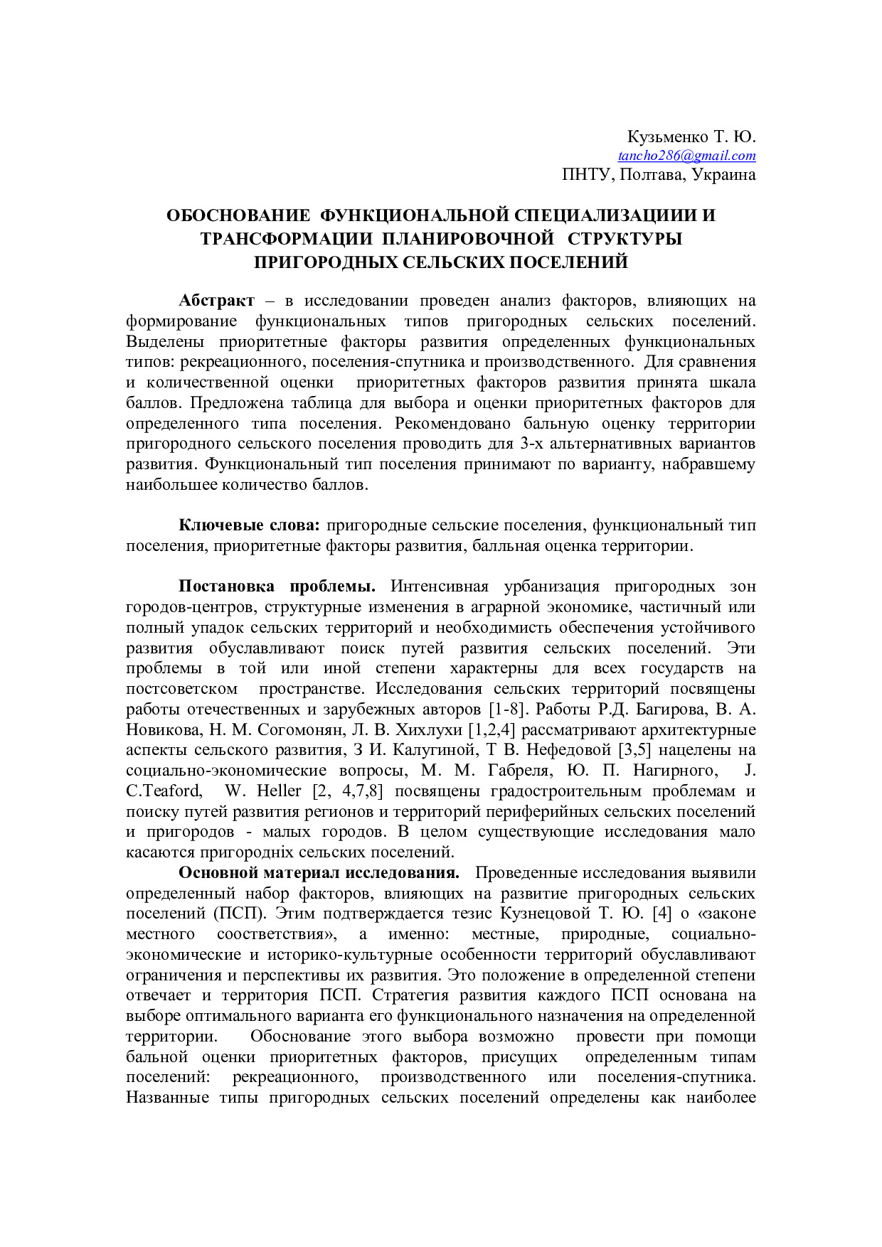 Обоснование функциональной специализации и трансформации планировочной структуры пригородных сельских поселений