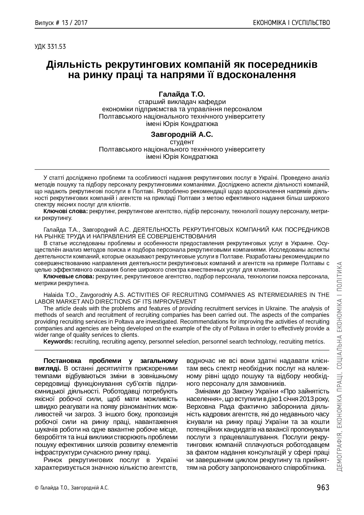 Діяльність рекрутингових компаній як посередників на ринку праці та напрями її вдосконалення