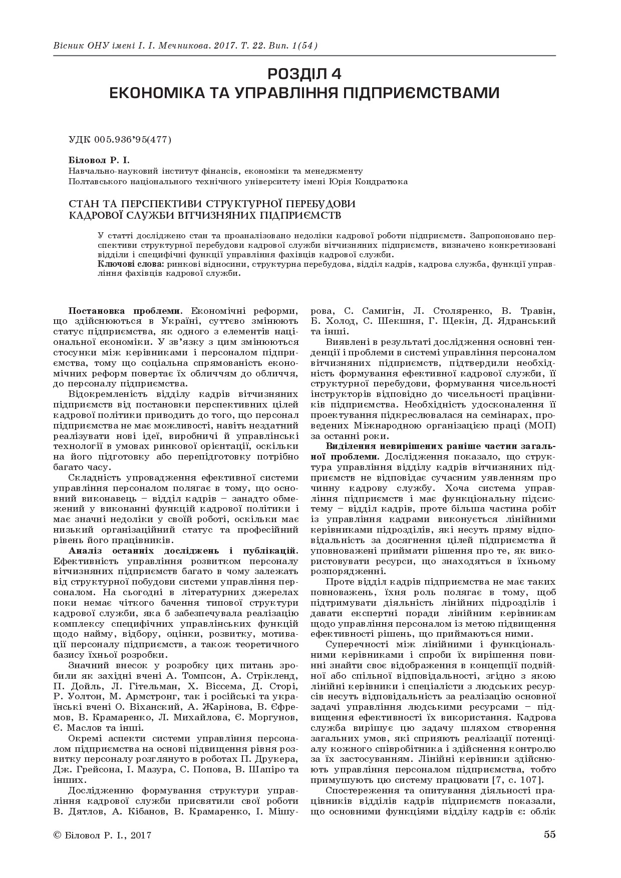 Стан та перспективи структурної перебудови кадрової служби вітчизняних підприємств
