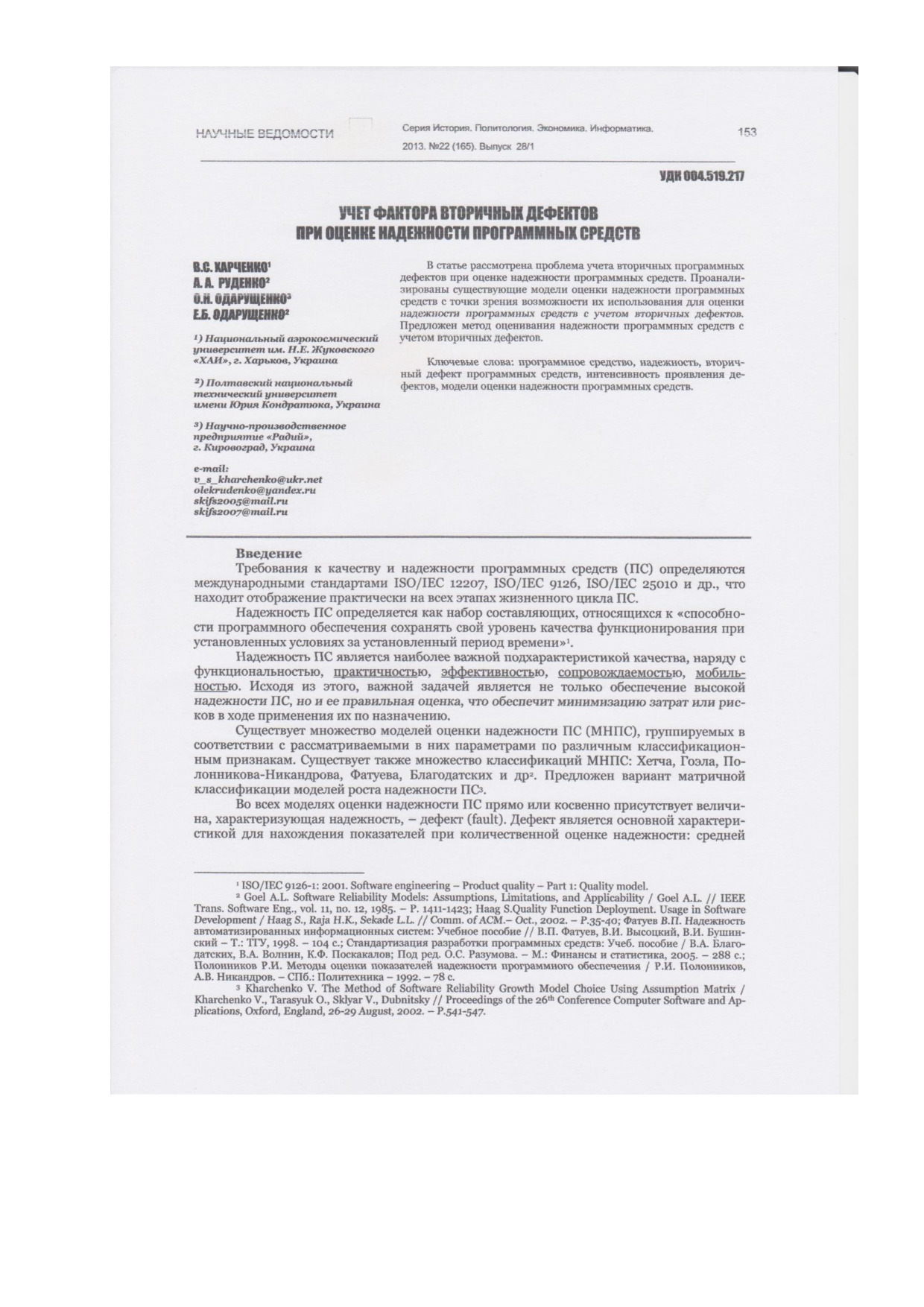 Учет фактора вторичных дефектов при оценке надежности программных средств