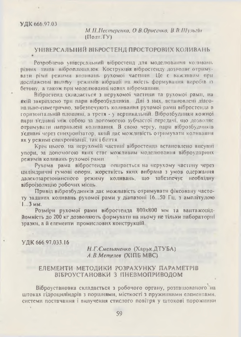 Універсальний вібростенд просторових коливань