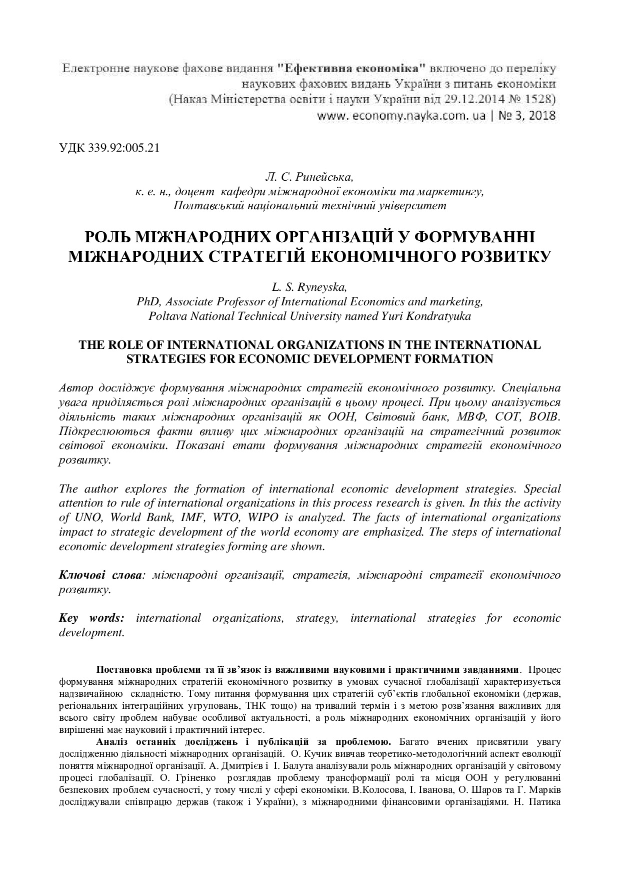 Роль міжнародних організацій у формуванні міжнародних стратегій економічного розвитку