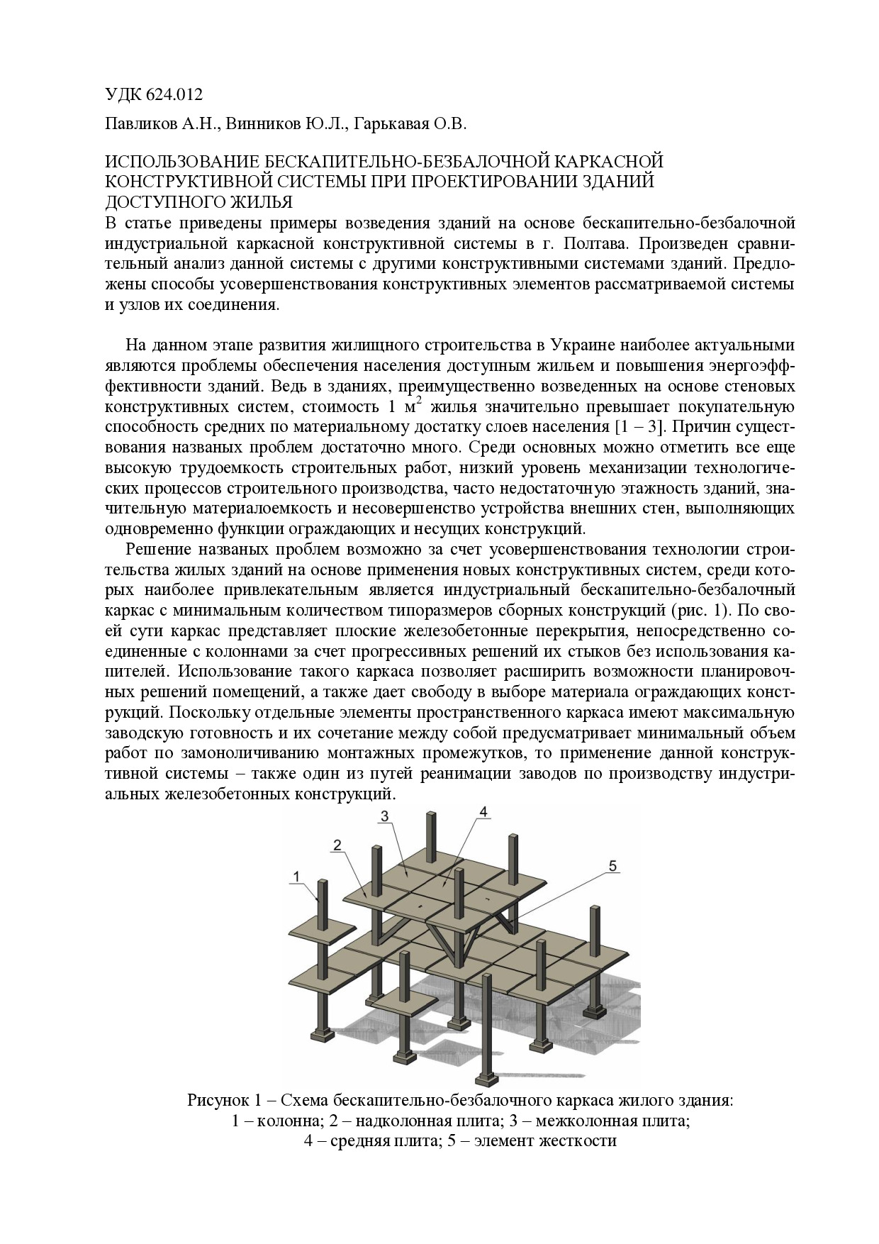 Использование бескапительно-безбалочной каркасной конструктивной системы при проектировании зданий доступного жилья