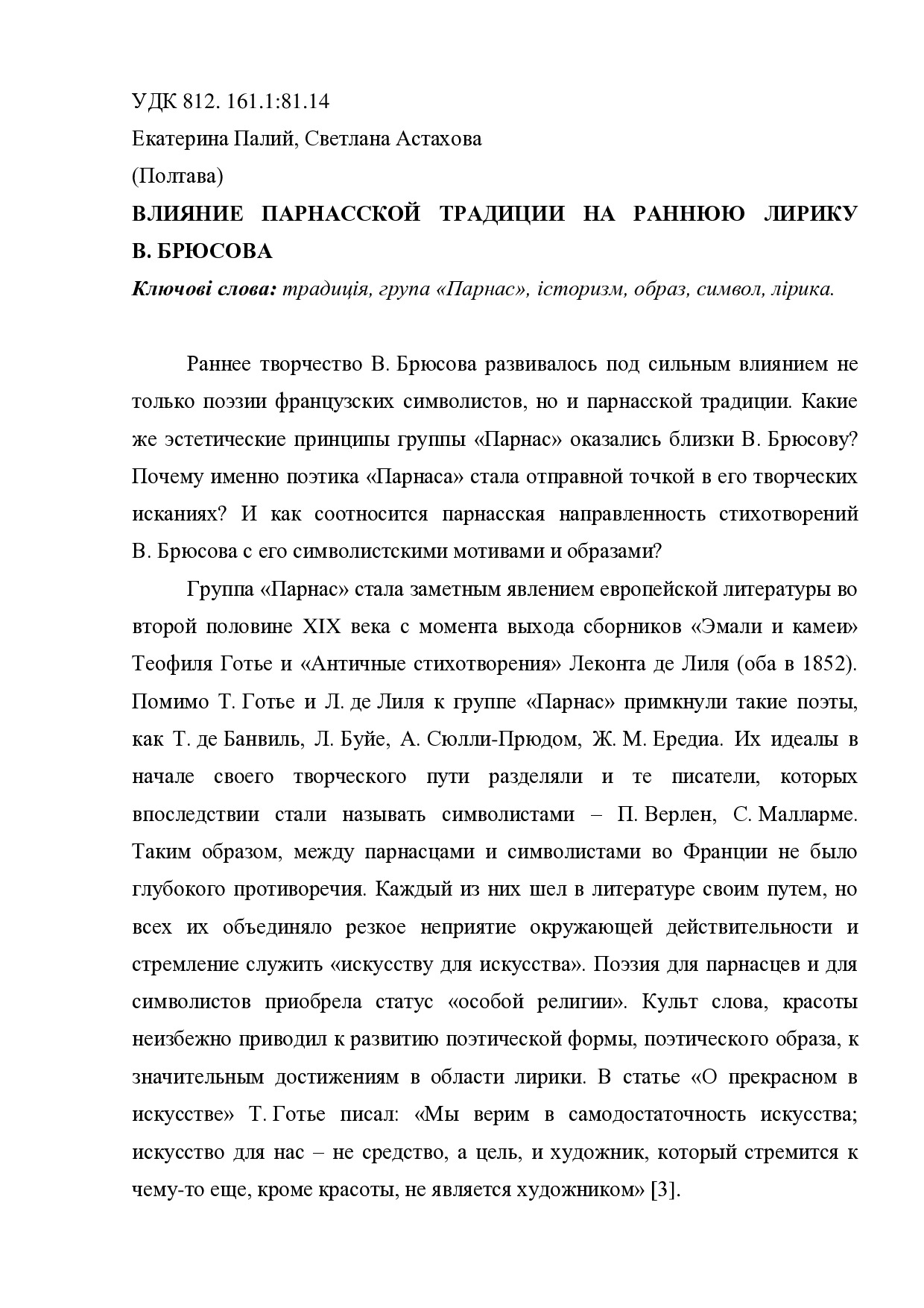Влияние парнасской традиции на раннюю лирику В. Брюсова