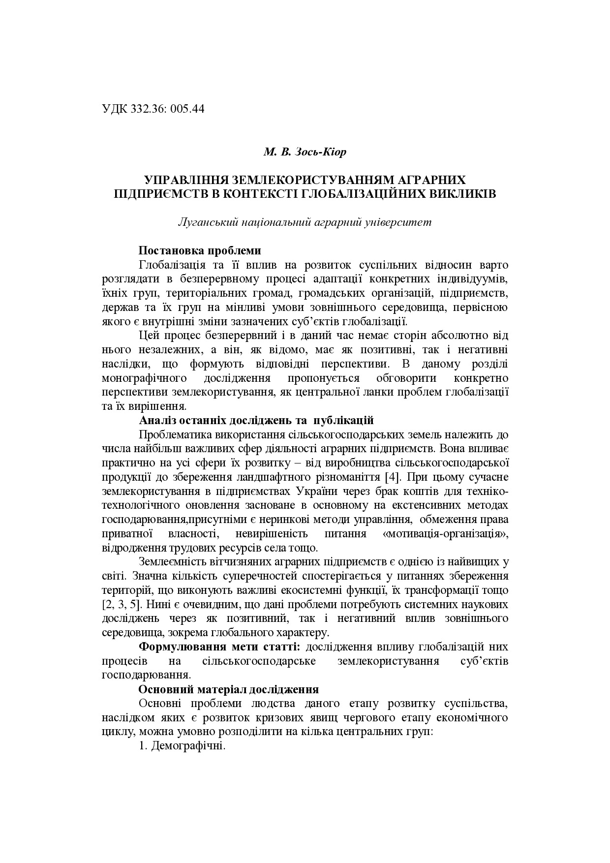 Управління землекористуванням аграрних підприємств в контексті глобалізаційних викликів