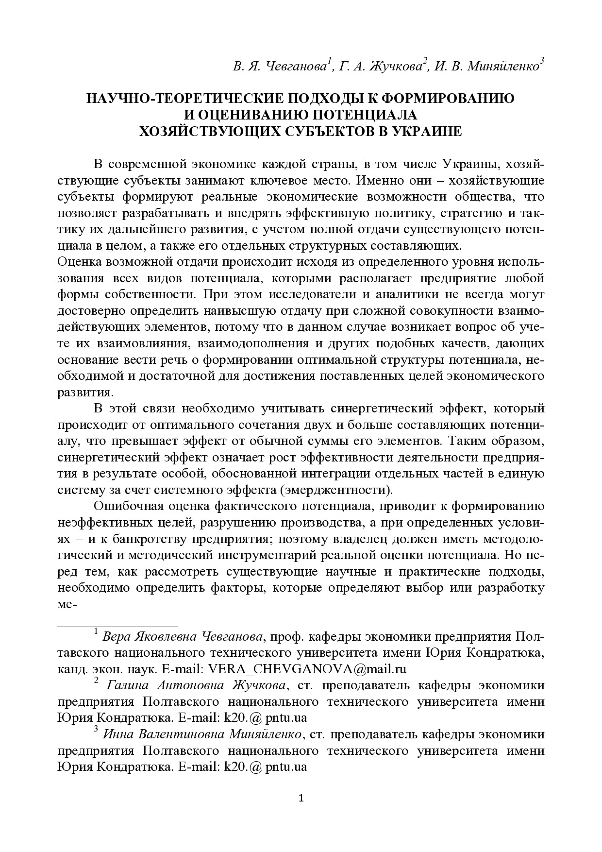 Научно-теоретические подходы к формированию и оцениванию потенциала хозяйствующих субъектов в Украине