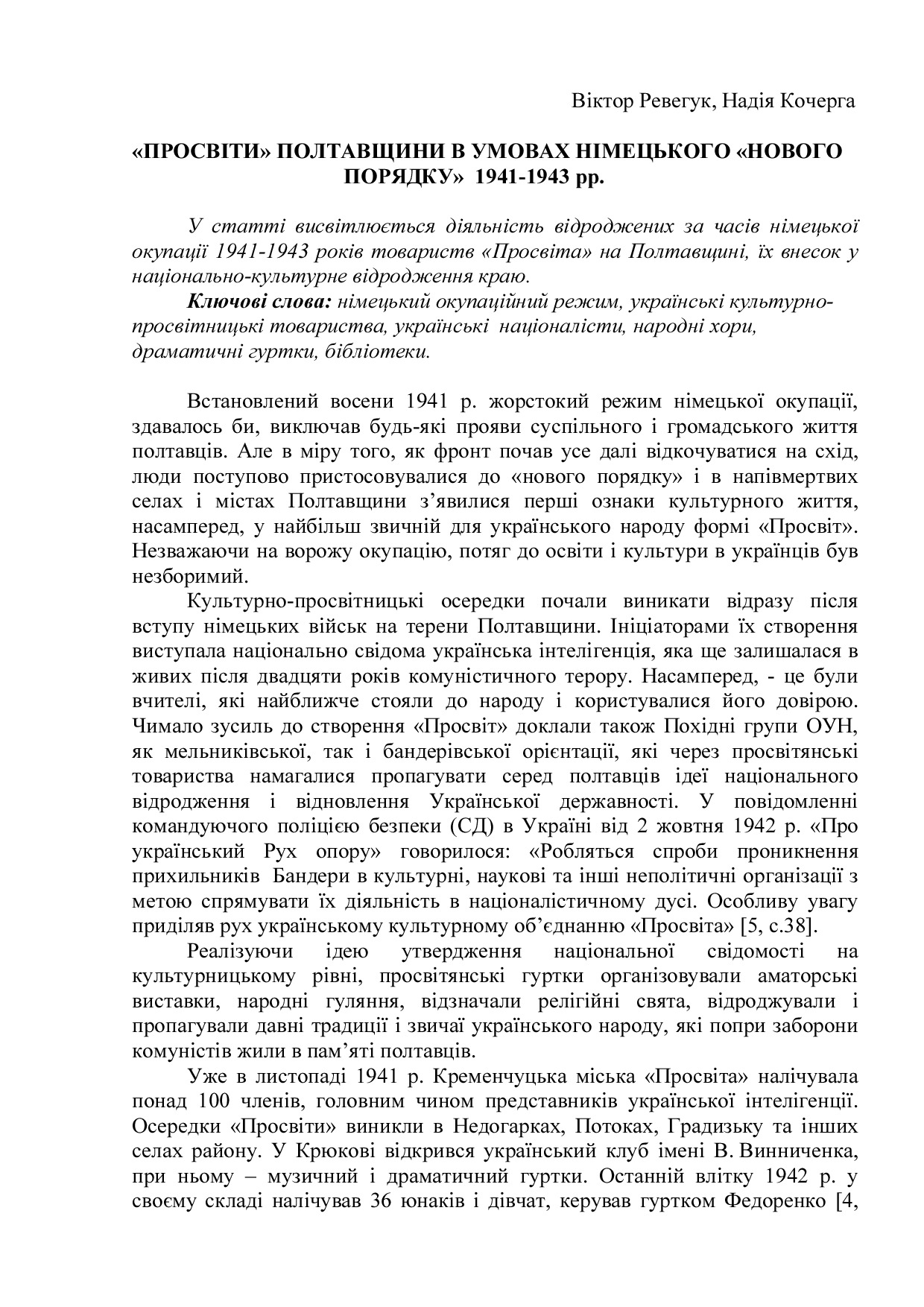 "Просвіти" Полтавщини в умовах німецького "нового порядку" 1941–1943 рр.