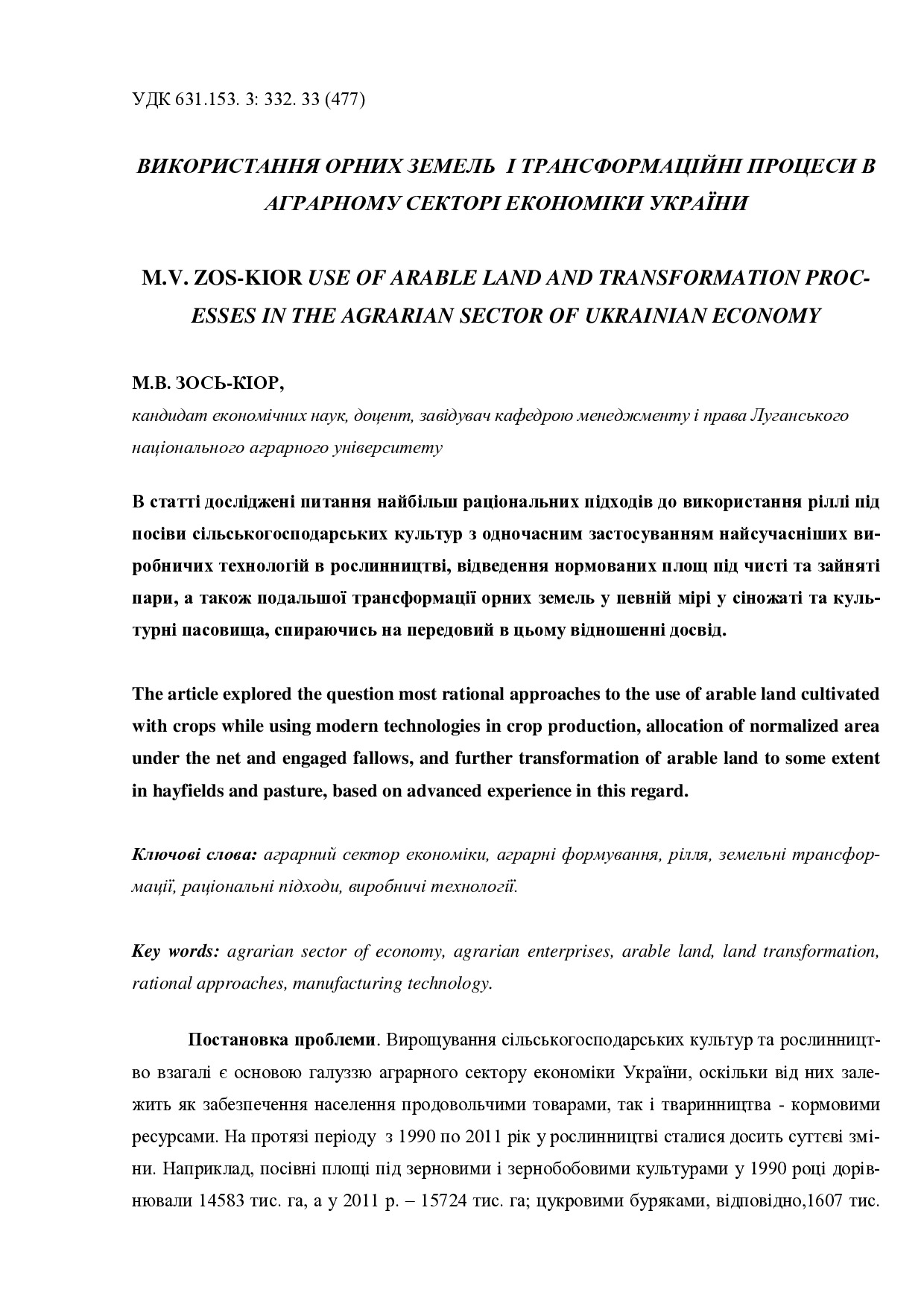 Використання орних земель і трансформаційні процеси в аграрному секторі економіки України