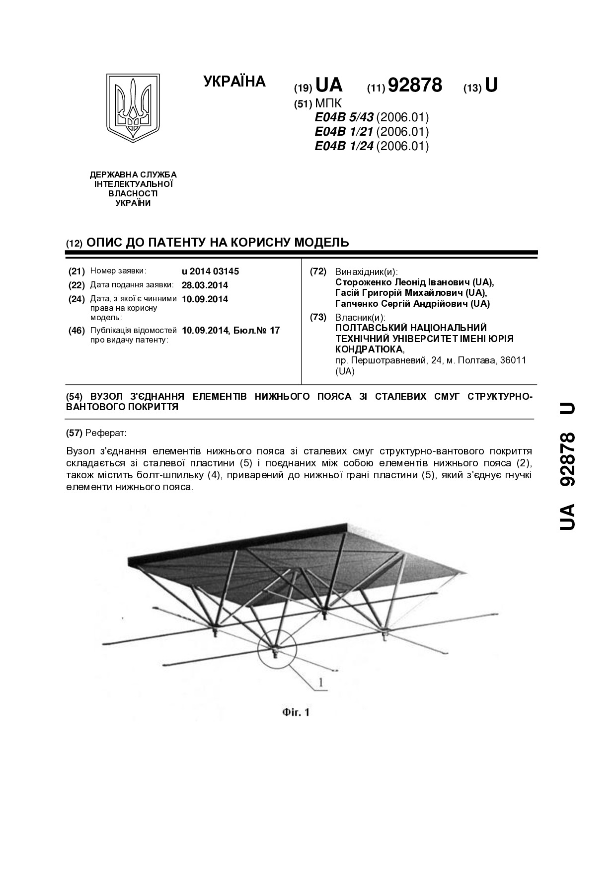 Вузол з’єднання елементів нижнього пояса зі сталевих смуг структурно-вантового покриття