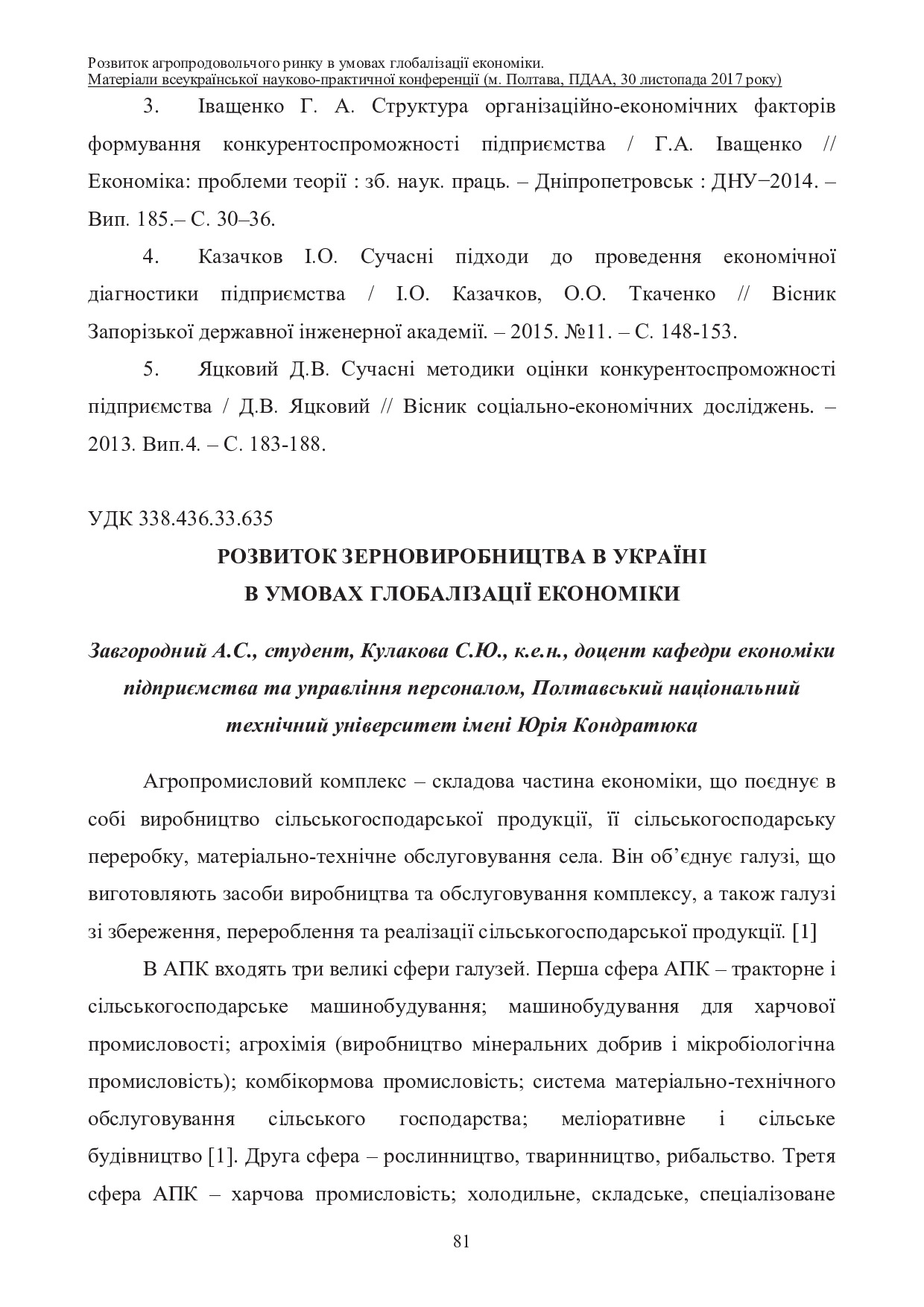 Розвиток зерновиробництва в Україні в умовах глобалізації економіки
