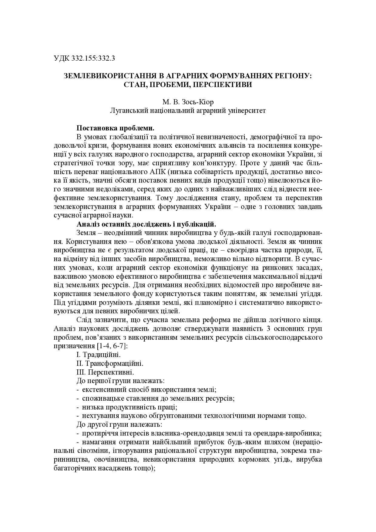 Землевикористання в аграрних формуваннях регіону: стан, пробеми, перспективи