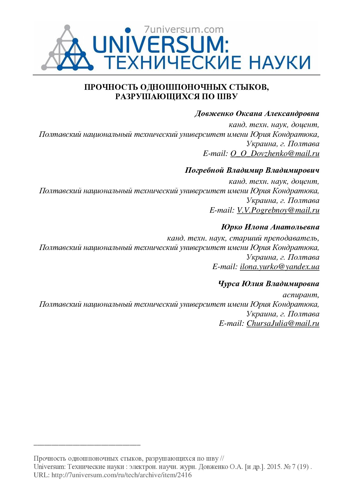 Прочность одношпоночных стыков, разрушающихся по шву