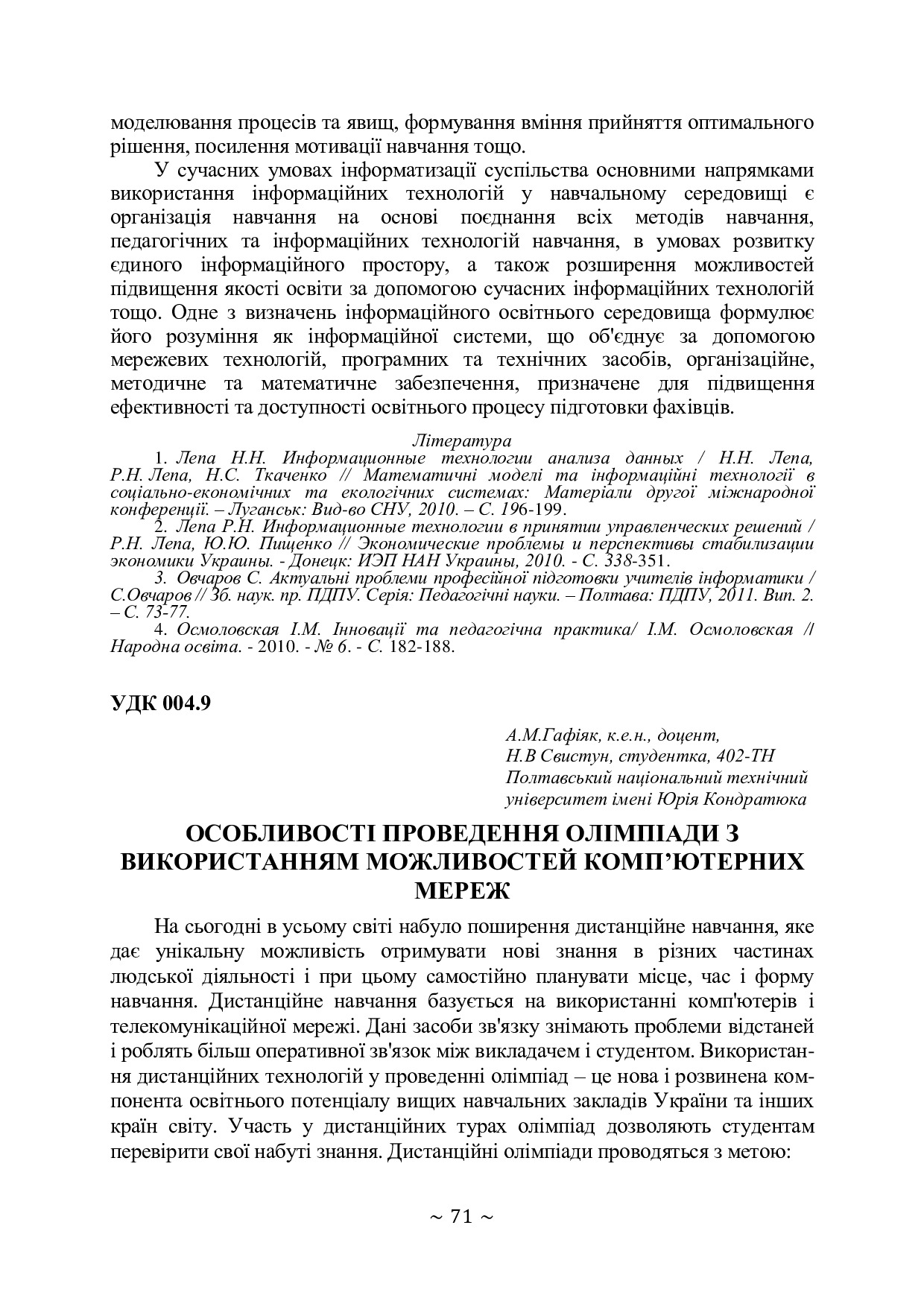 Особливості проведення олімпіади з використанням можливостей комп’ютерних мереж