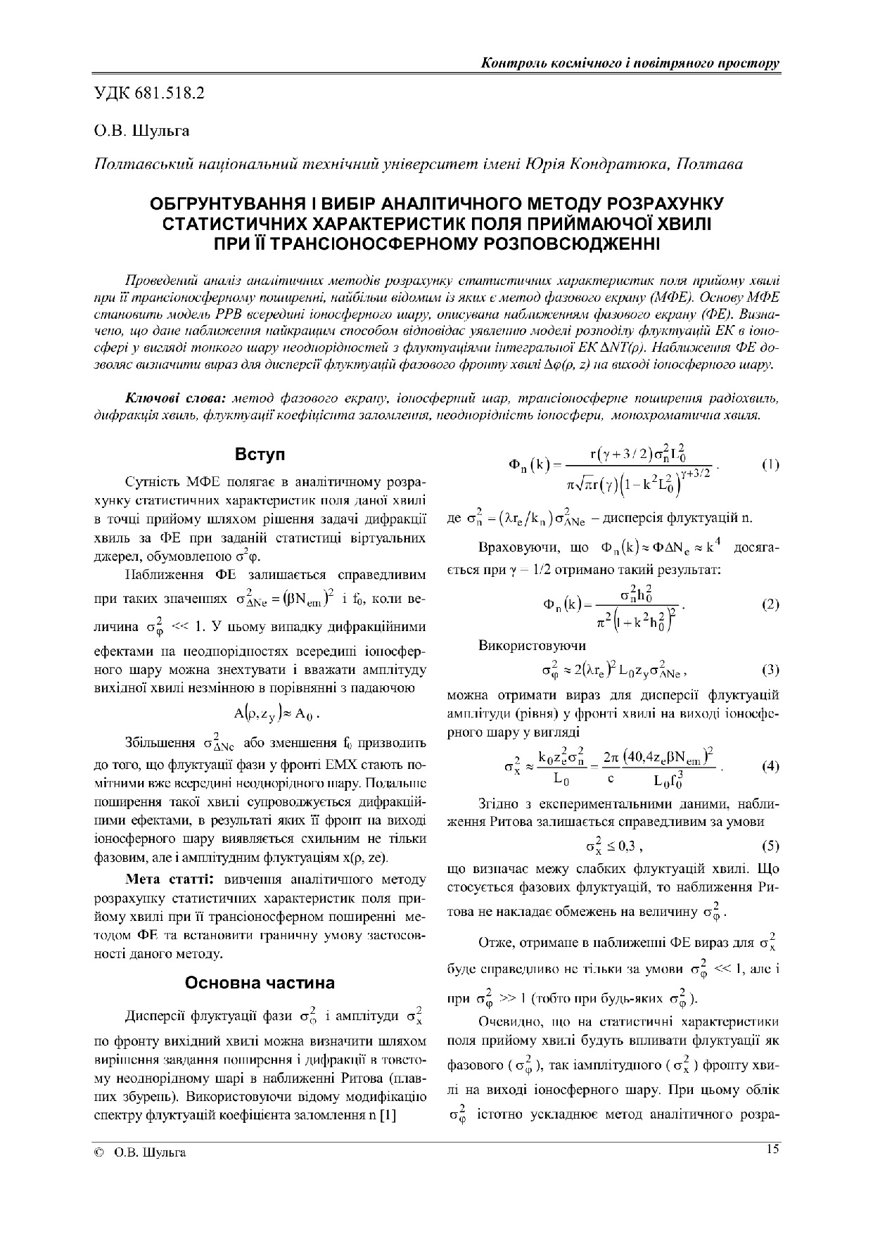 Обгрунтування і вибір аналітичного методу розрахунку статистичних характеристик поля приймаючої хвилі при її трансіоносферному розповсюдженні