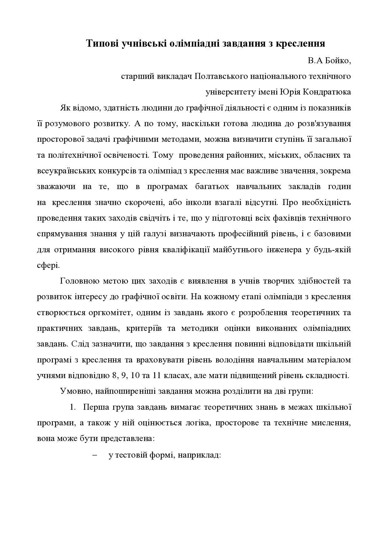 Типові учнівські олімпіадні завдання з креслення