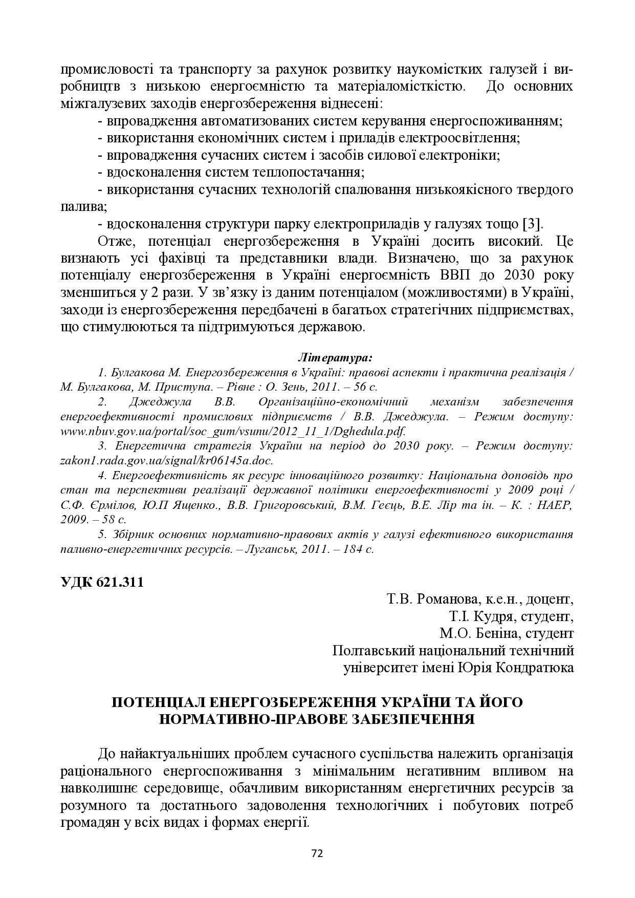 Потенціал енергозбереження України та його нормативно-правове забезпечення