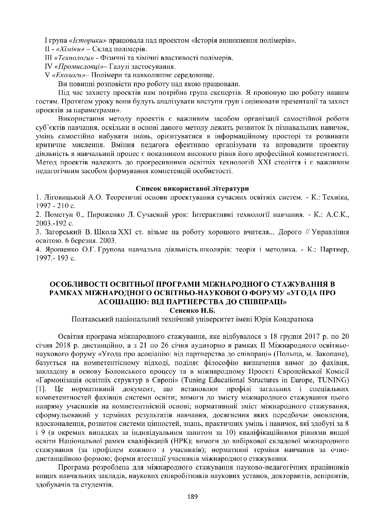 Особливості освітньої програми міжнародного стажування врамках міжнародного освітньо-наукового форуму «Угода про асоціацію: від партнерства до співпраці»