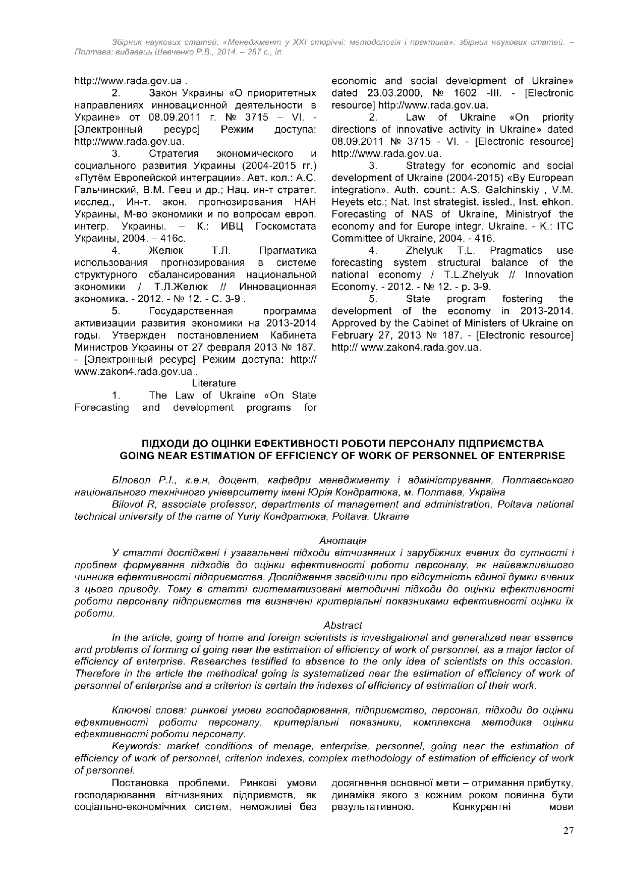 Підходи до оцінки ефективності роботи персоналу підприємства