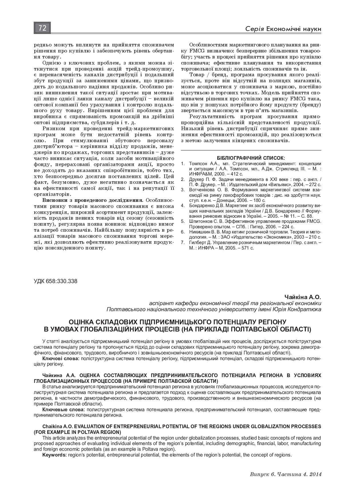Оцінка складових підприємницького потенціалу регіону в умовах глобалізаційних процесів (на прикладі Полтавської області)