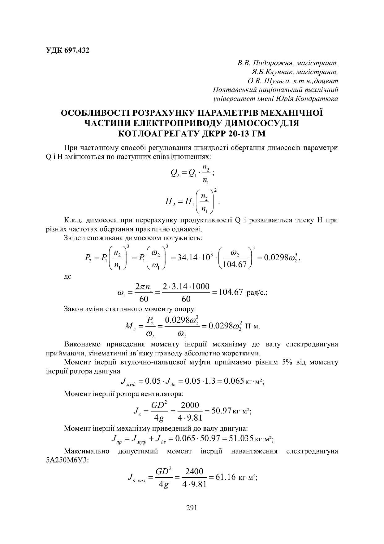 Особливості розрахунку параметрів механічної частини електроприводу димососу для котлоагрегату ДКРР 20-13 ГМ