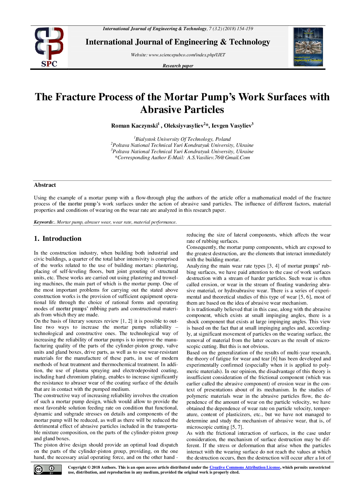 The fracture process of the mortar pump’s work surfaces with abrasive particles