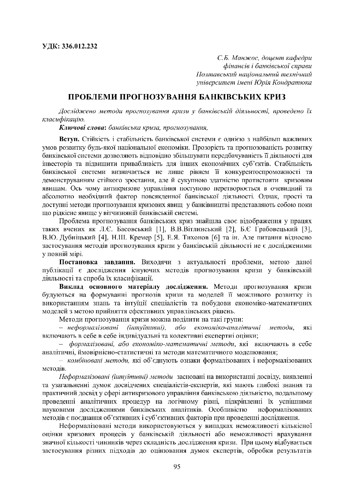 Проблеми прогнозування банківських криз