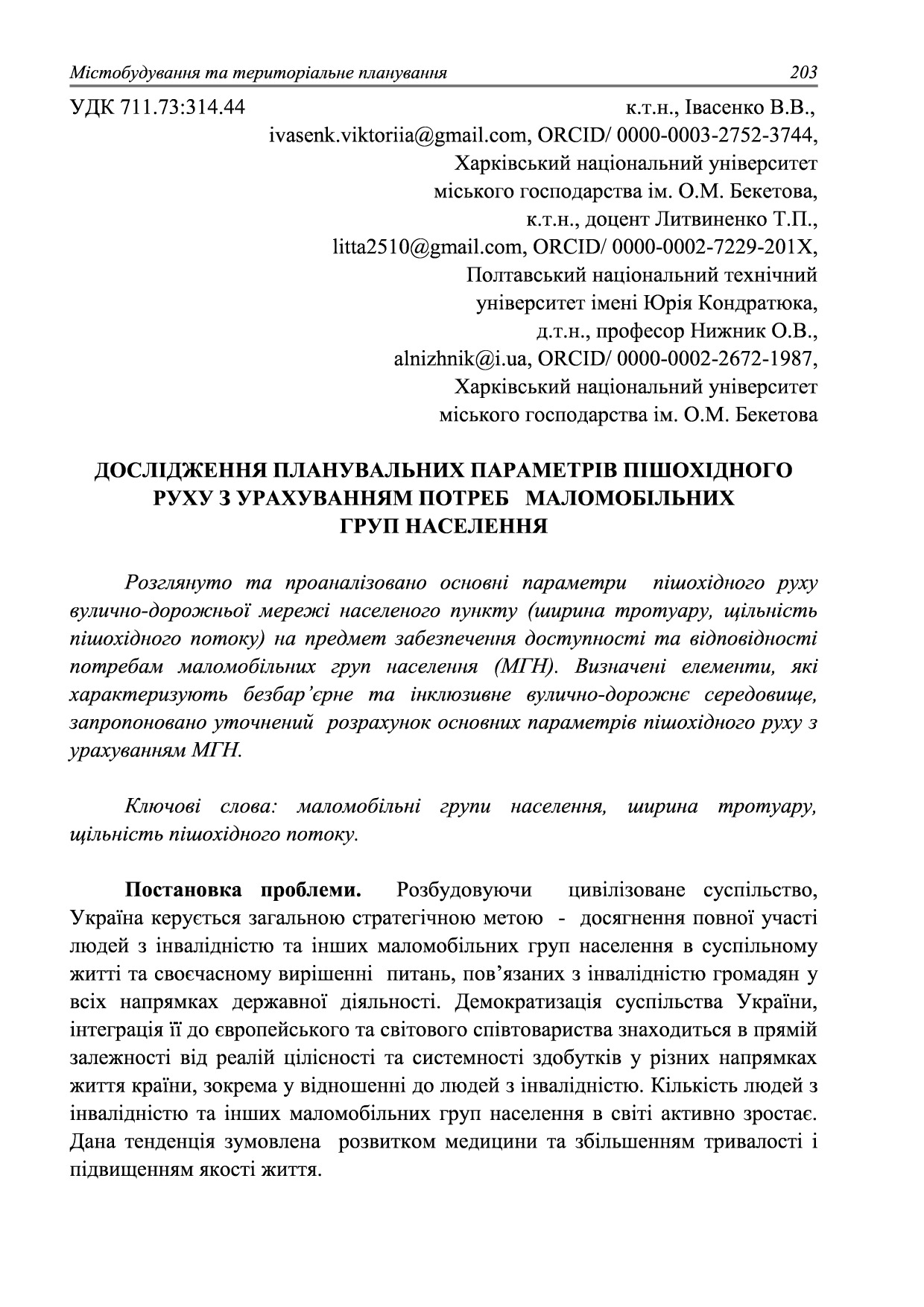 Дослідження планувальних параметрів пішохідного руху з урахуванням потреб маломобільних груп населення