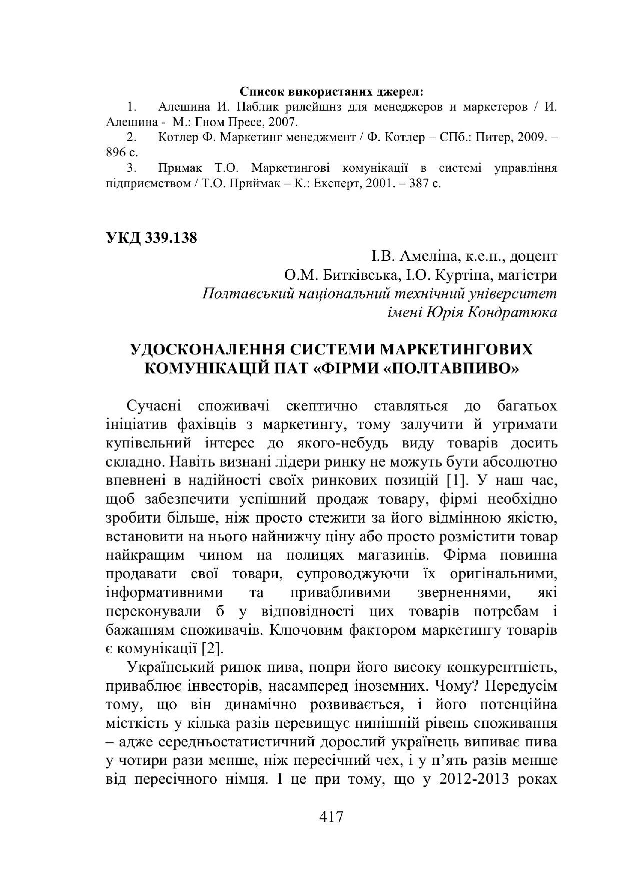 Удосконалення системи маркетингових комунікацій ПАТ "Фірми "Полтавпиво"
