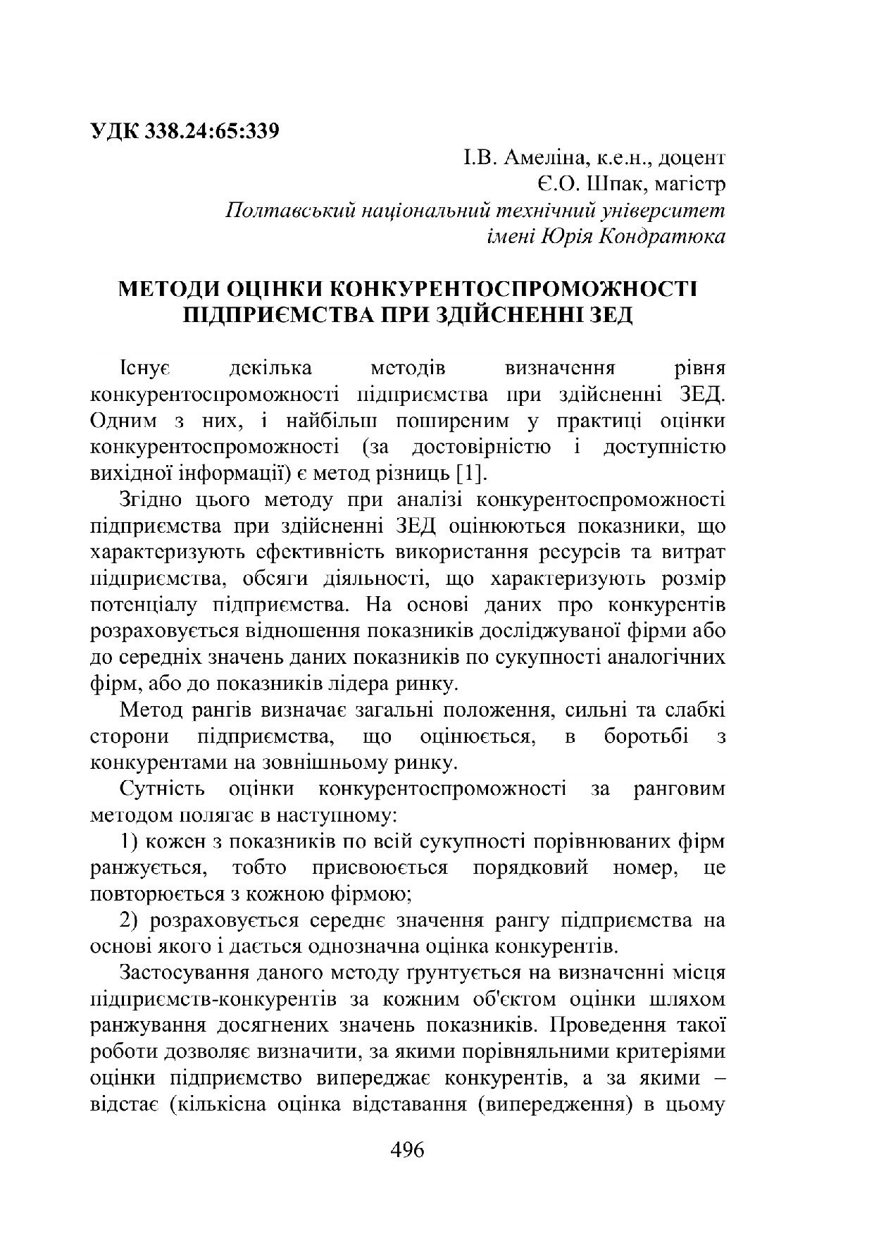 Методи оцінки конкурентоспроможності підприємства при здійсненні ЗЕД
