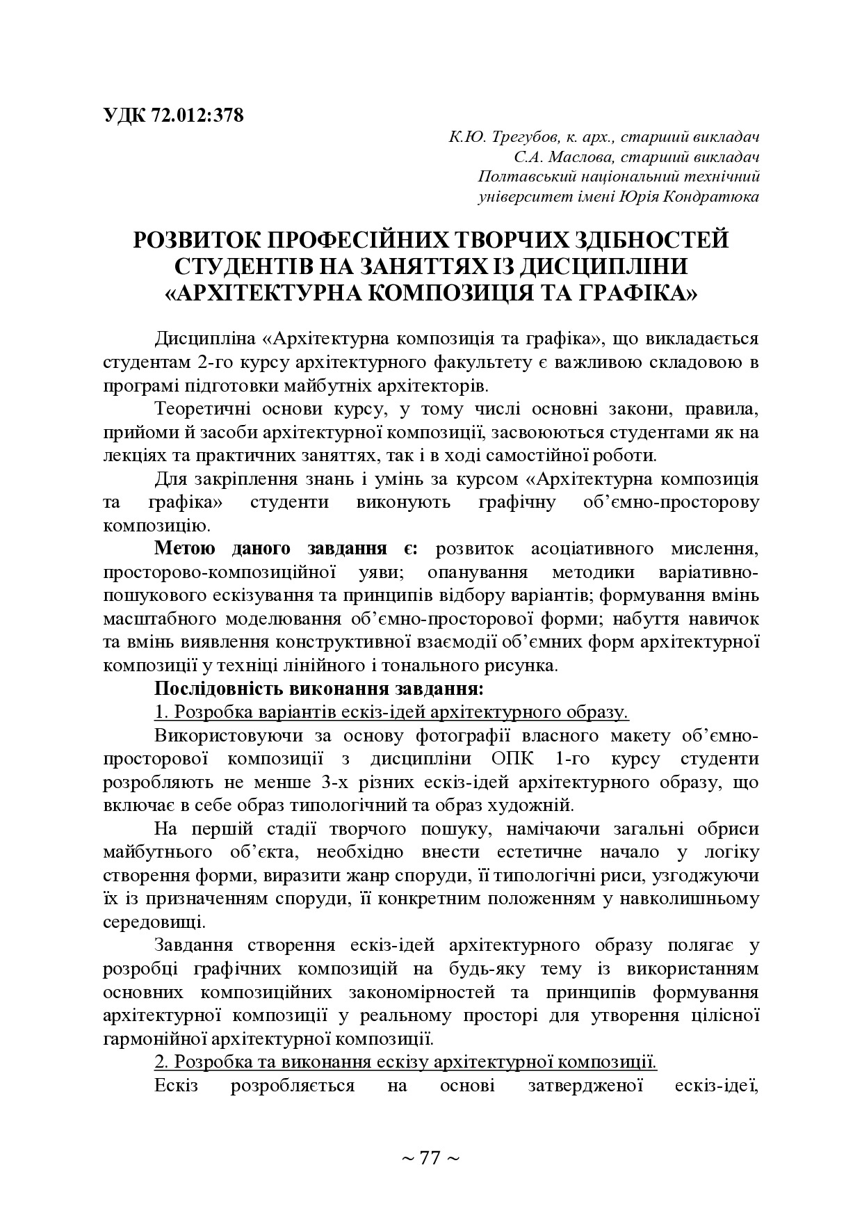 Розвиток професійних творчих здібностей студентів на заняттях із дисципліни «Архітектурна композиція та графіка»