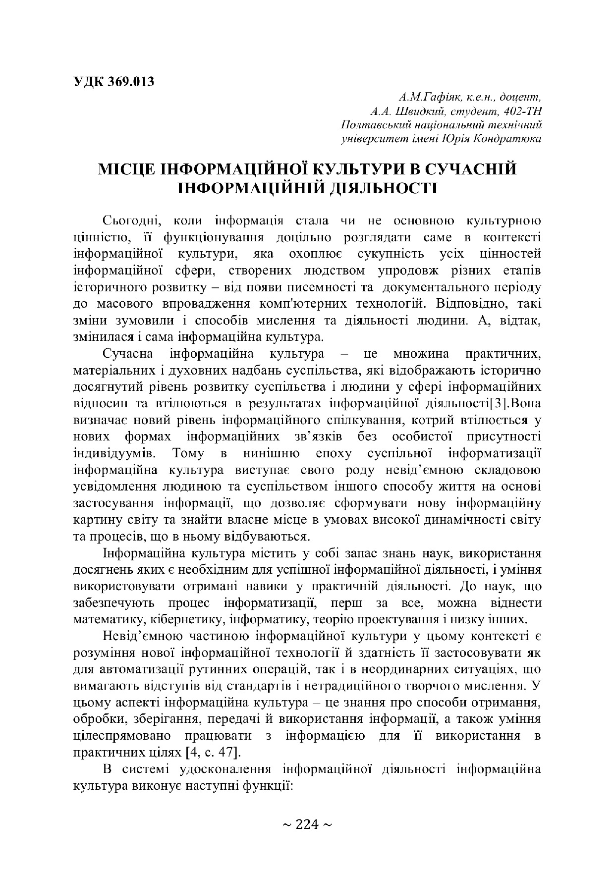 Місце інформаційної культури в сучасній інформаційній діяльності