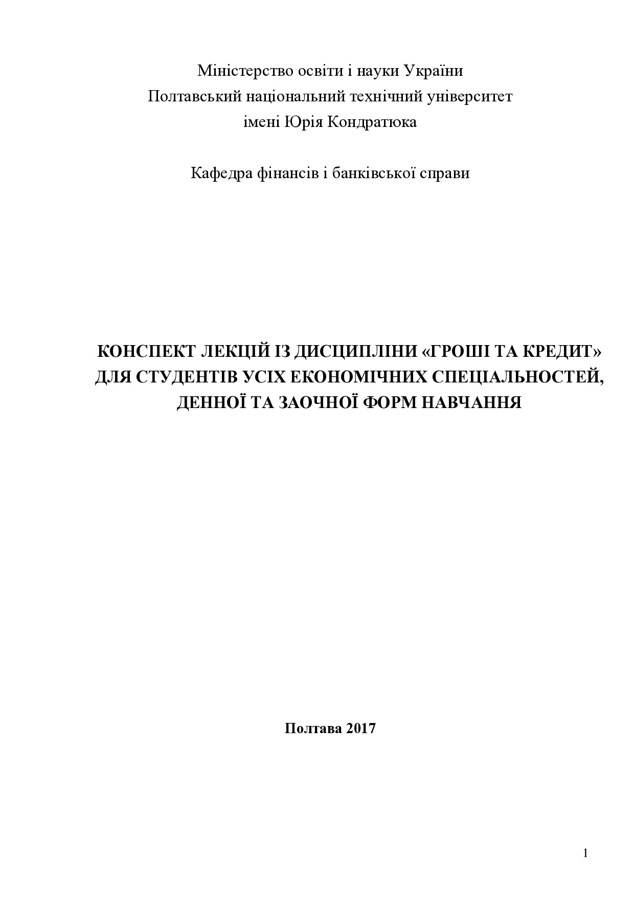 Конспект лекцій із дисципліни «Гроші та кредит» для студентів усіх економічних спеціальностей, денної та заочної форм навчання
