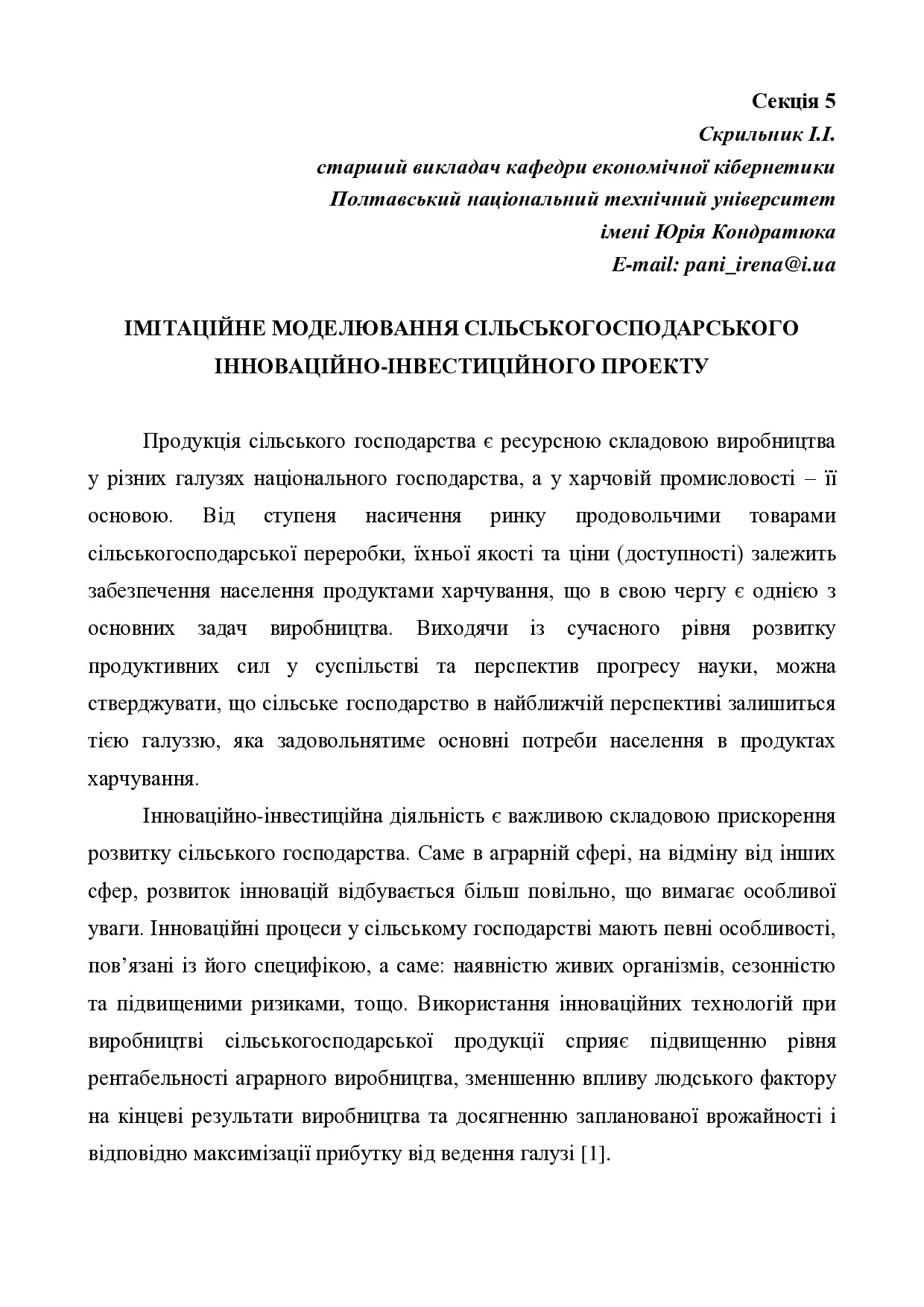 Імітаційне моделювання сільськогосподарського інноваційно-інвестиційного проекту