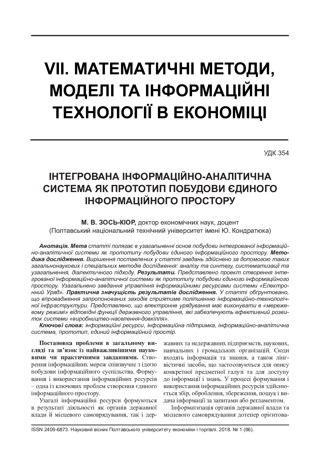 Інтегрована інформаційно-аналітична система як прототип побудови єдиного інформаційного простор