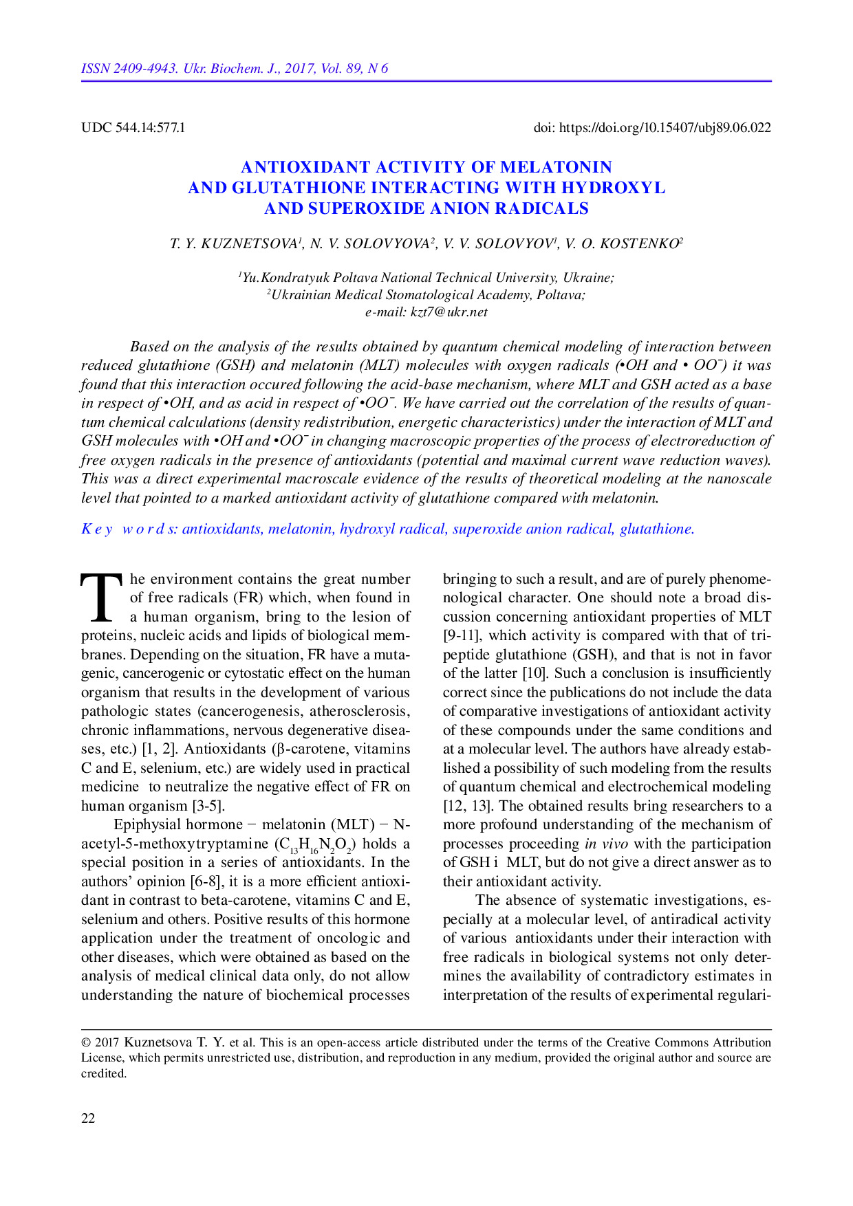 Antioxidant activity of melatonin and glutathione interacting with hydroxyl- and superoxide anion radicals