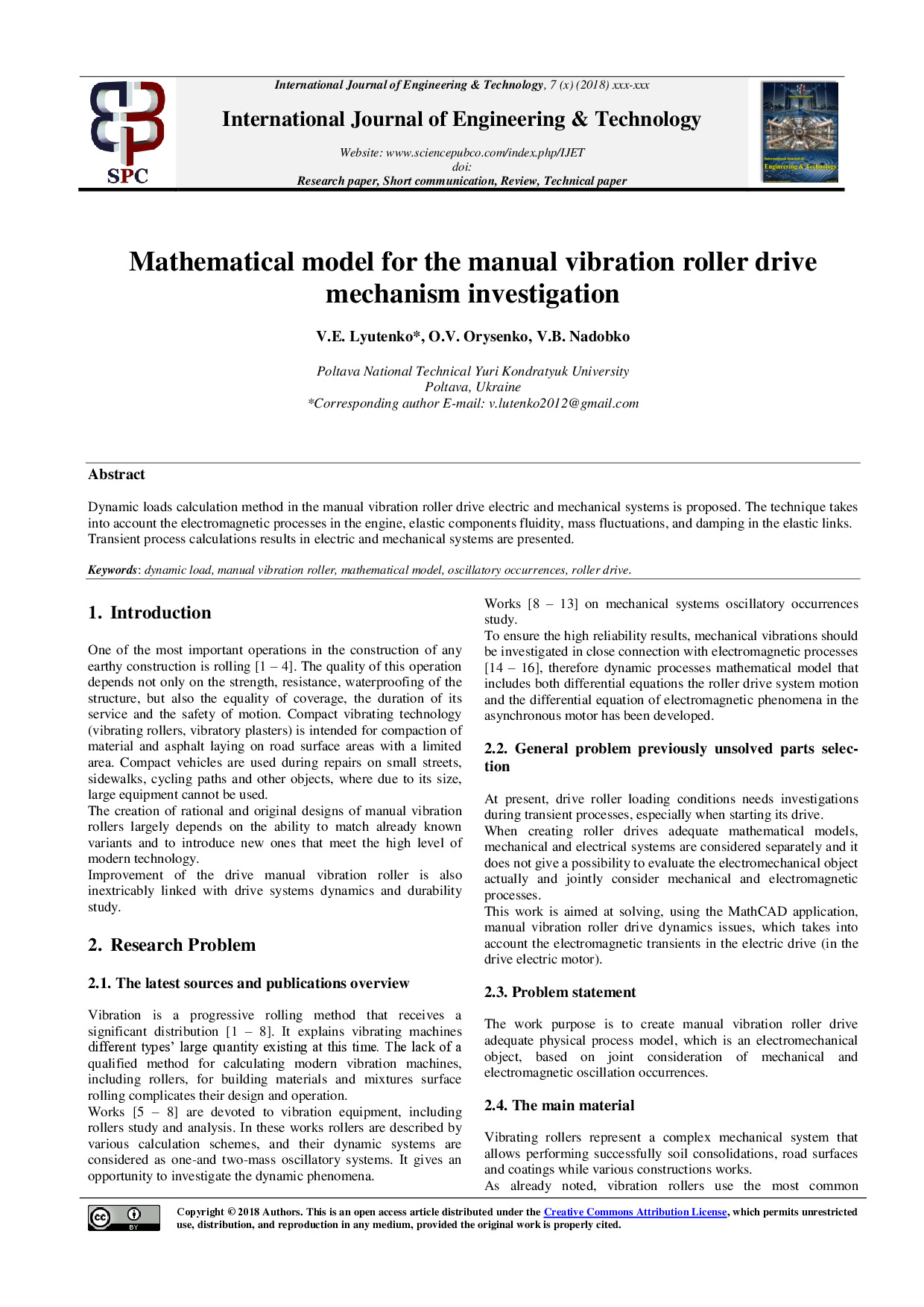 Mathematical Model for the Manual Vibration Roller Drive Mechanism Investigation