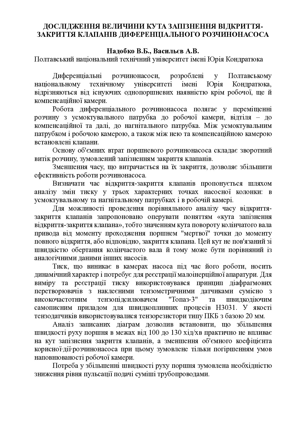 Дослідження величини кута запізнення відкриття-закриття клапанів диференціального розчинонасоса