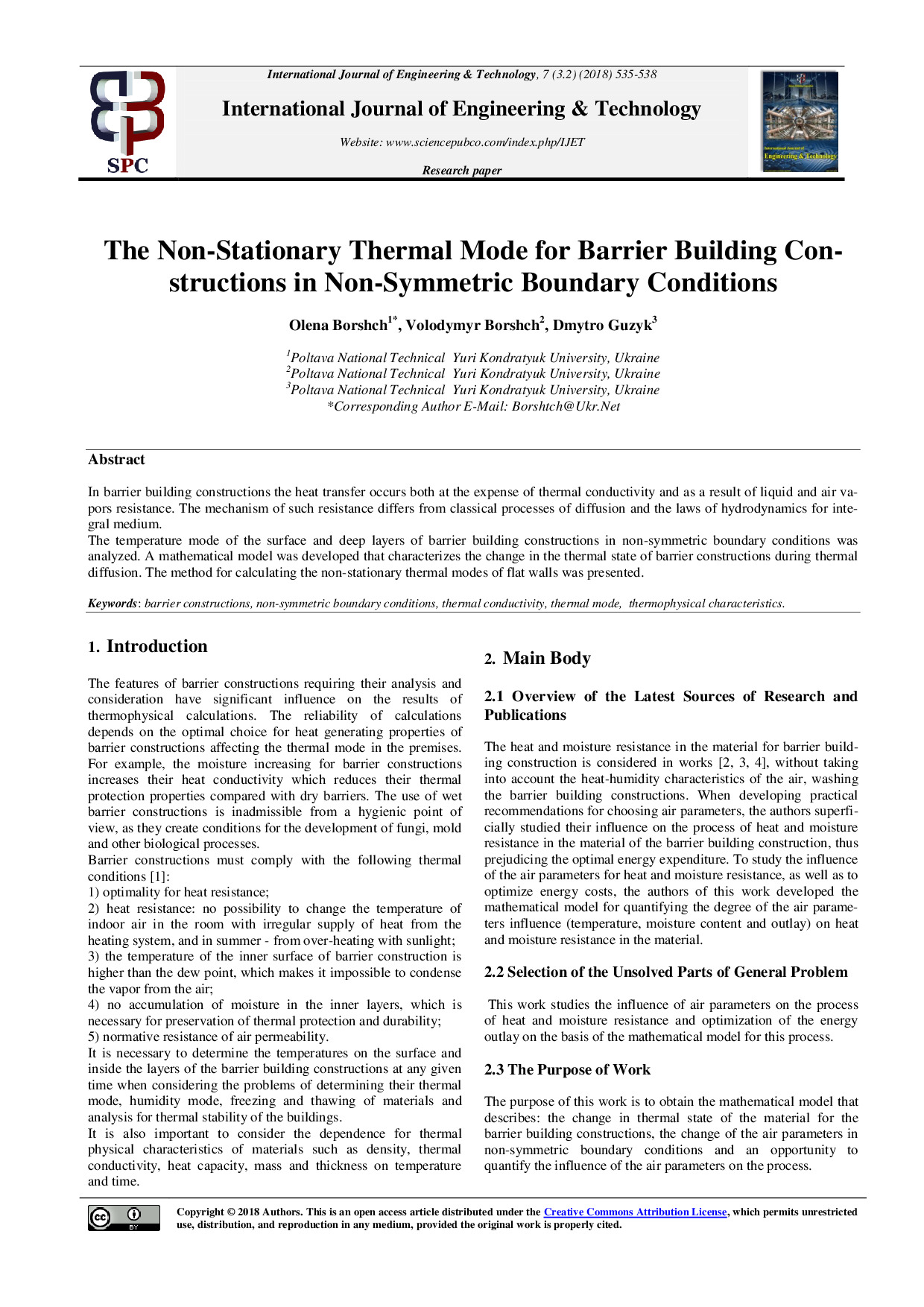 Borshch O.B. The non-stationary thermal mode for barrier building constructions in non-symmetric boundary conditions / O.B. Borshch, V.V. Borshch, D.V. Guzyk // International Journal of Engineering & Technology. - 2018. - Vol. 7, № 3.2 . - P. 535-538.