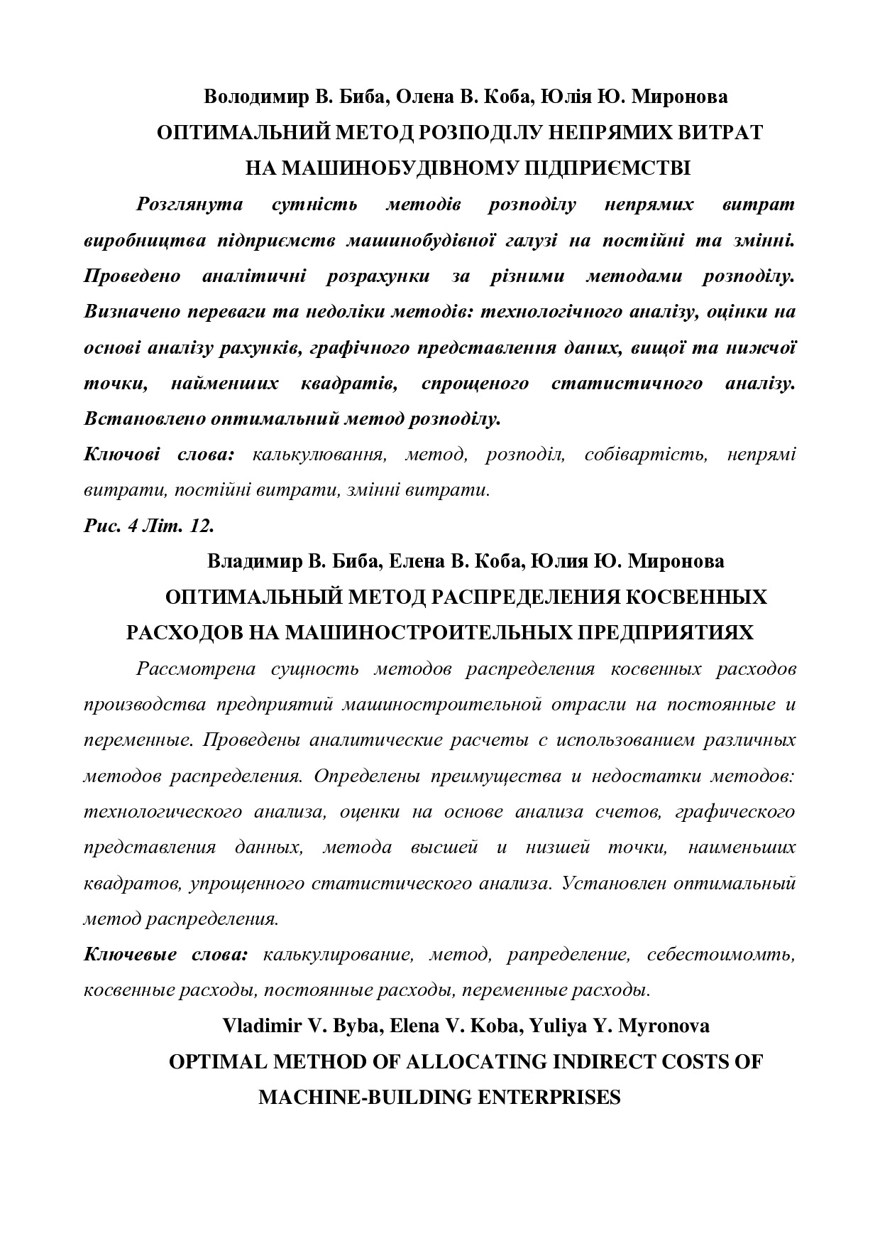 Оптимальний метод розподілу непрямих витрат на машинобудівному підприємстві