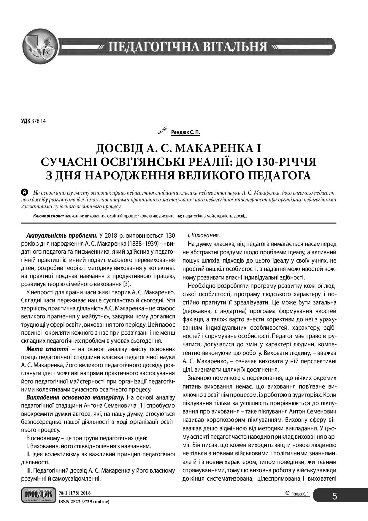 Досвід А.С. Макаренко і сучасні освітянські реалії: до 130-річчя з дня народження великого педагога