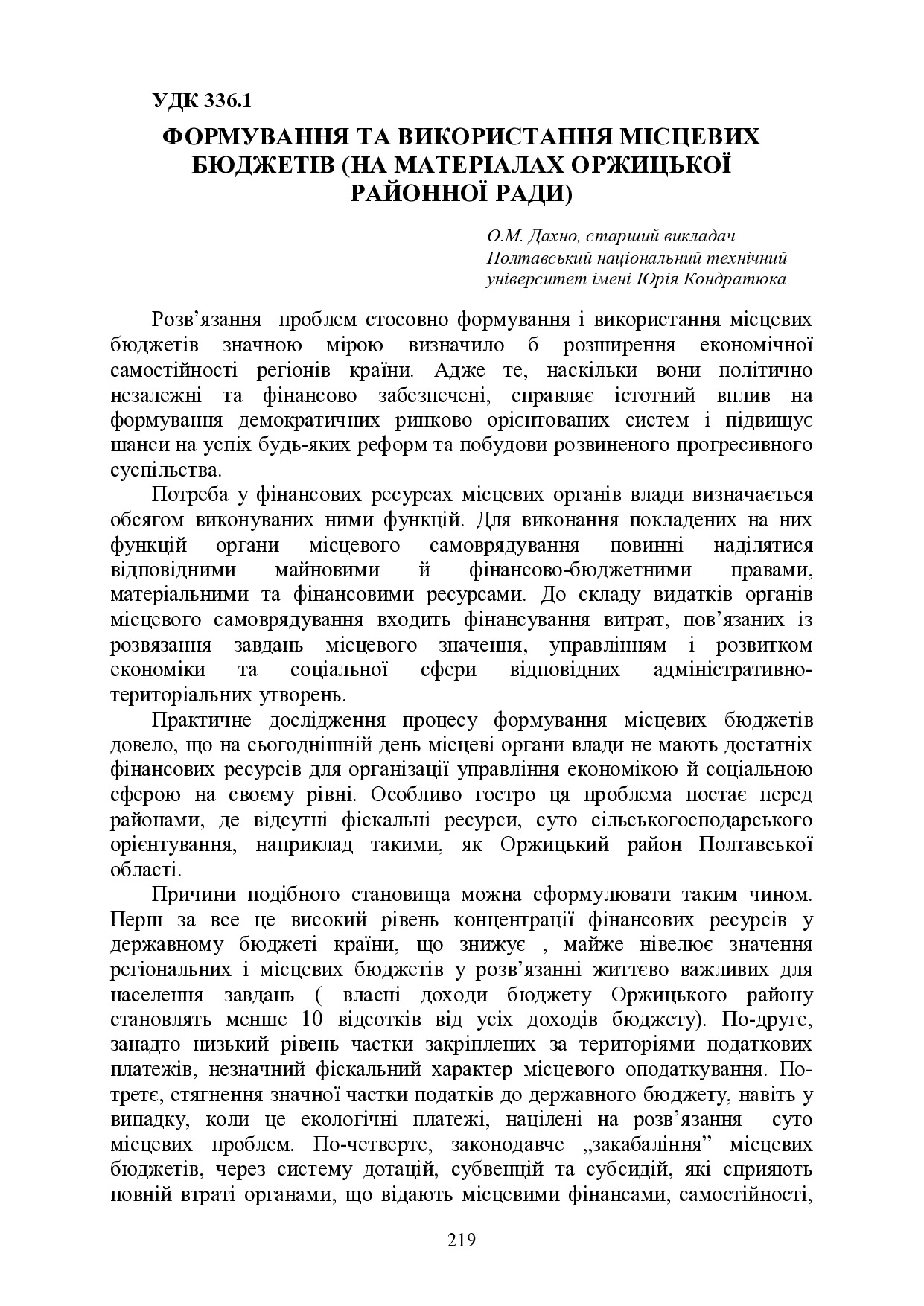 Формування та використання місцевих бюджетів (на матеріалах Оржицької районної ради)