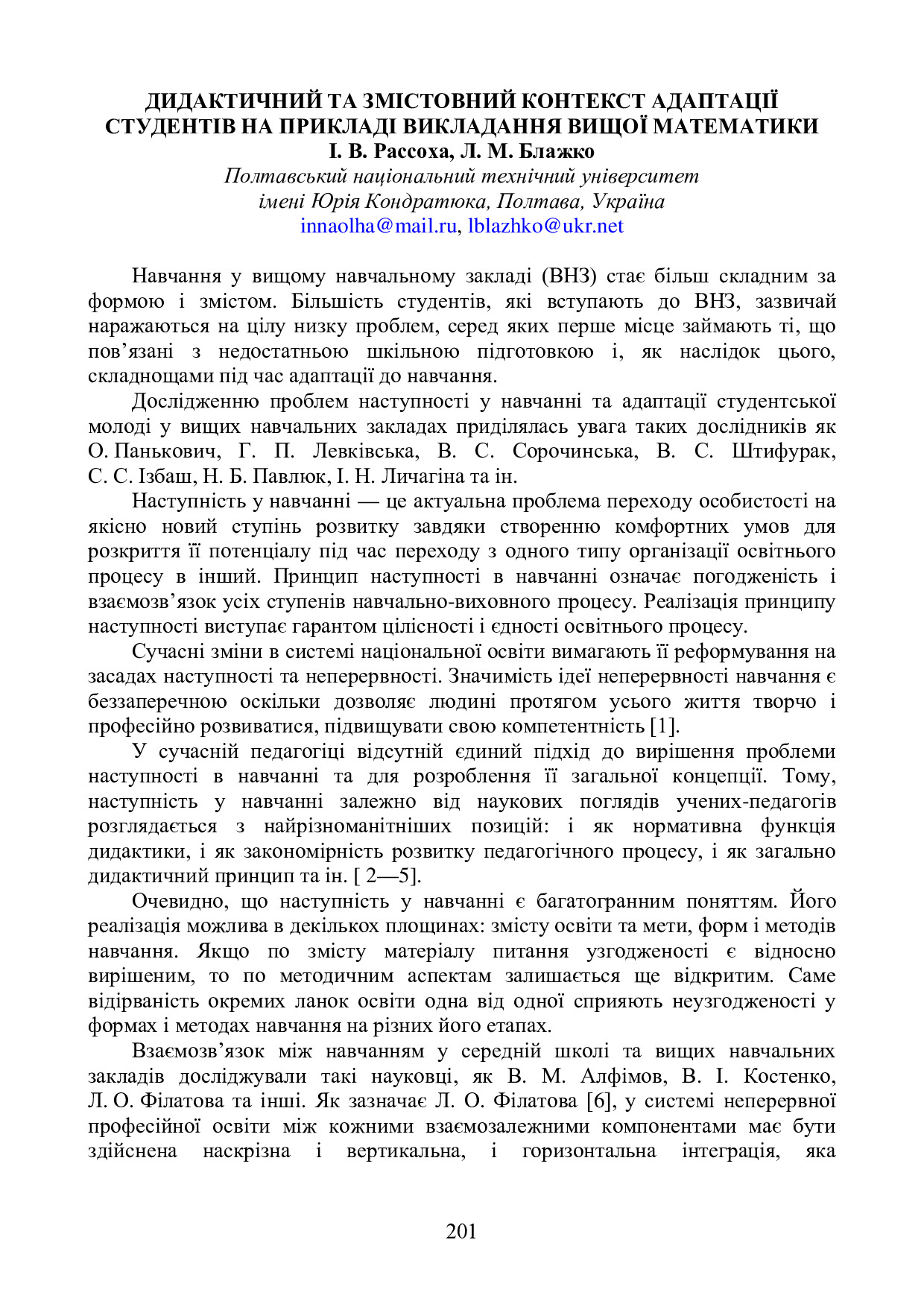 Дидактичний та змістовний контекст адаптації студентів на прикладі викладання вищої математики