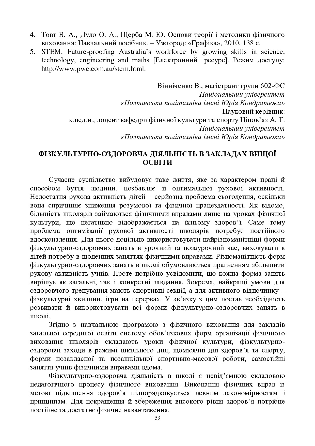 Фізкультурно-оздоровча діяльність в закладах вищої освіти