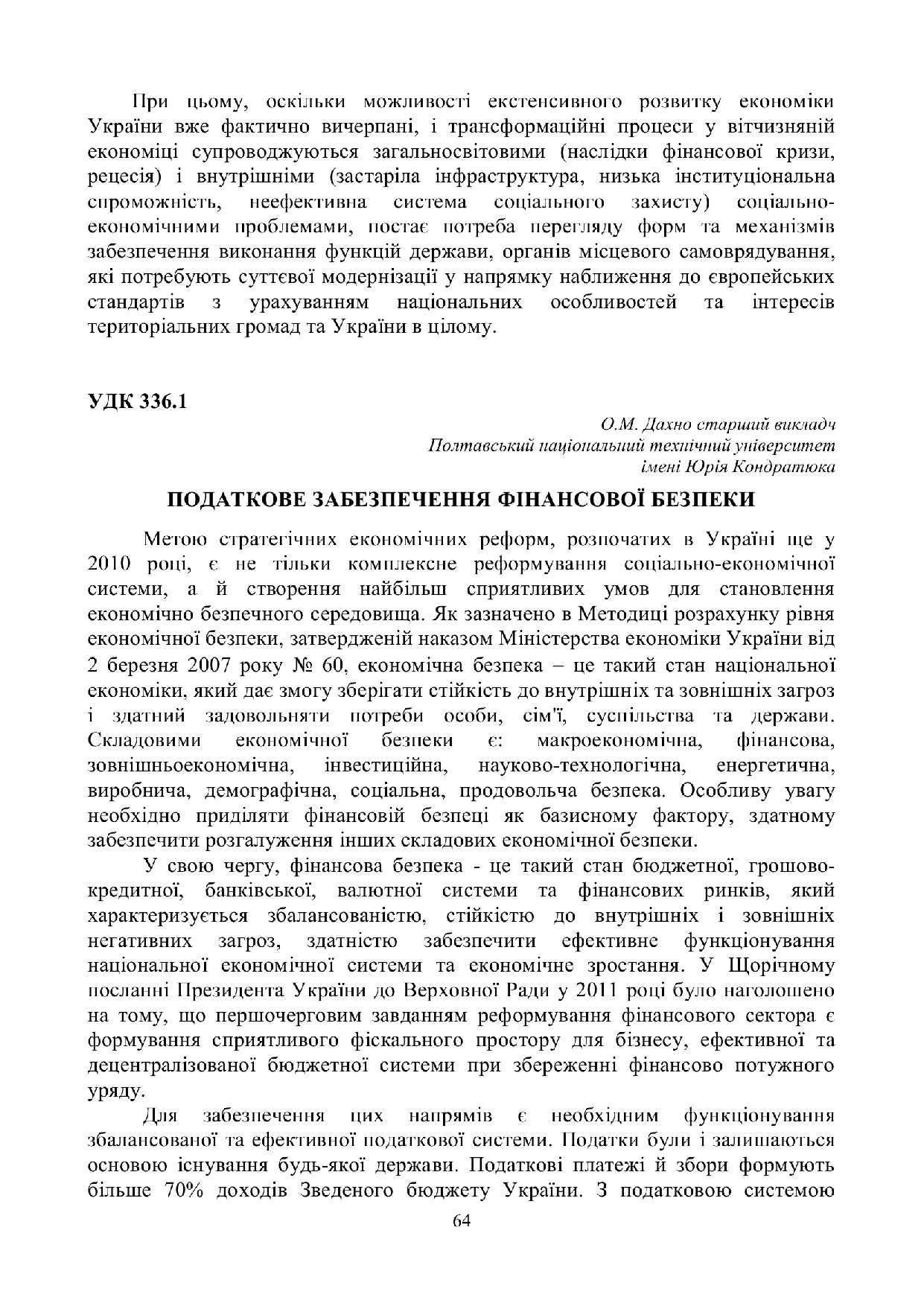 Податкове забезпечення фінансової безпеки