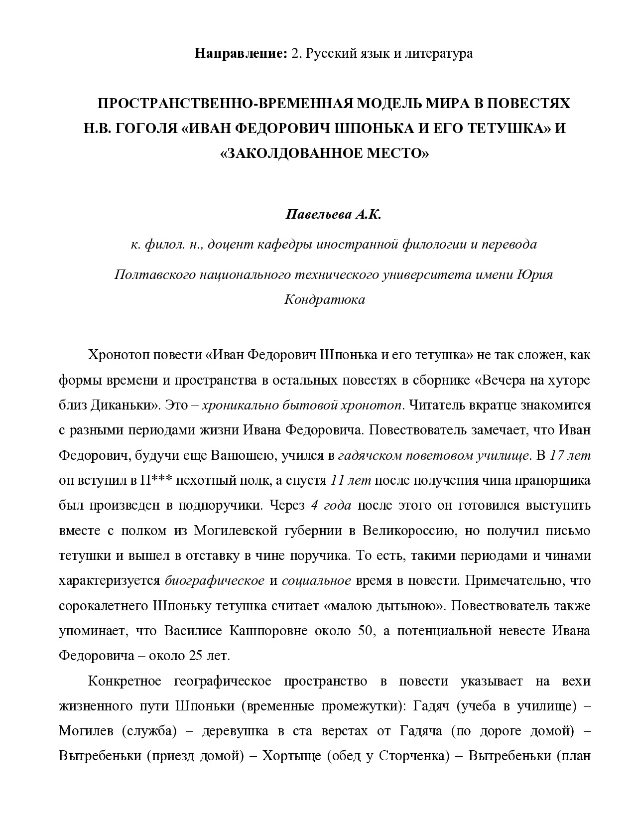 Пространственно-временная модель мира в повестях Н.В. Гоголя «Иван Федорович Шпонька и его тетушка» и «Заколдованное место»